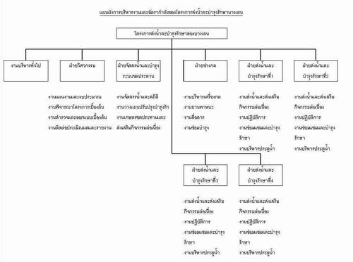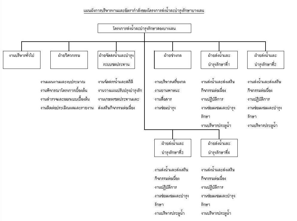 โครงการส่งน้ำและบำรุงรักษาบางเลน แบ่งการบริหารงานภายในออกเป็น 7 งาน คือ